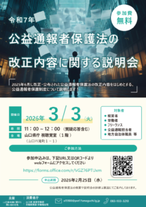 令和7年公益通報者保護法の改正内容に関する説明会【山口県】参加申込フォーム – フォーム​に記入する<外部リンク>